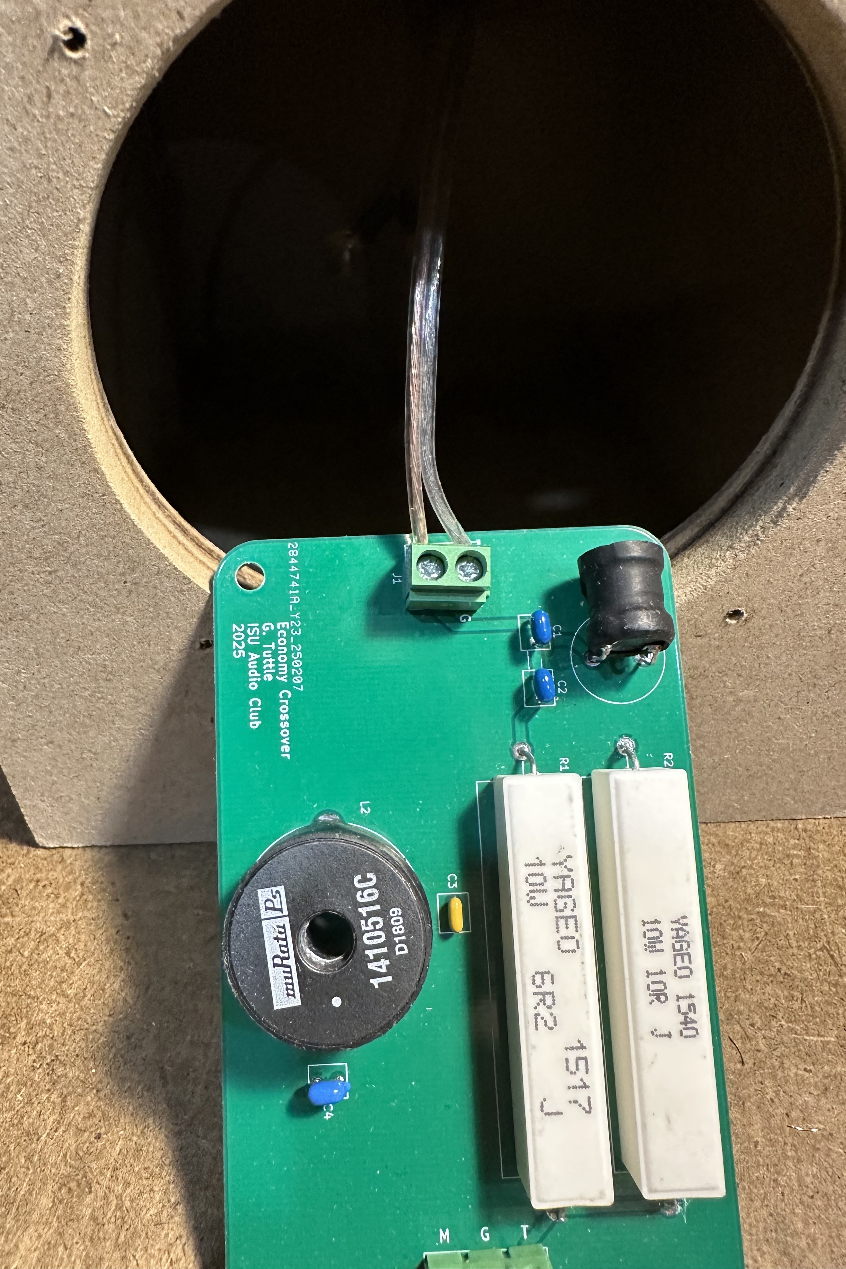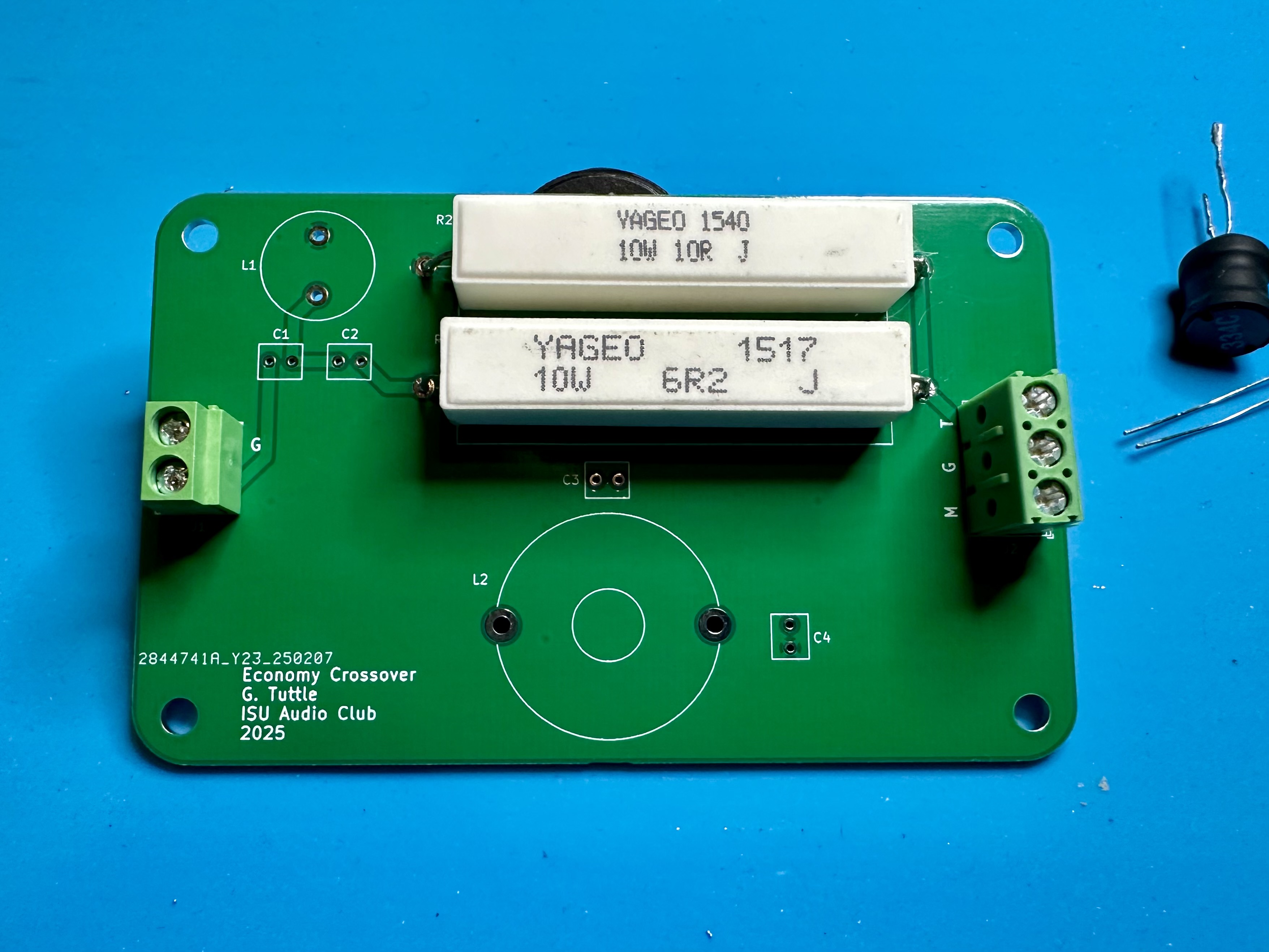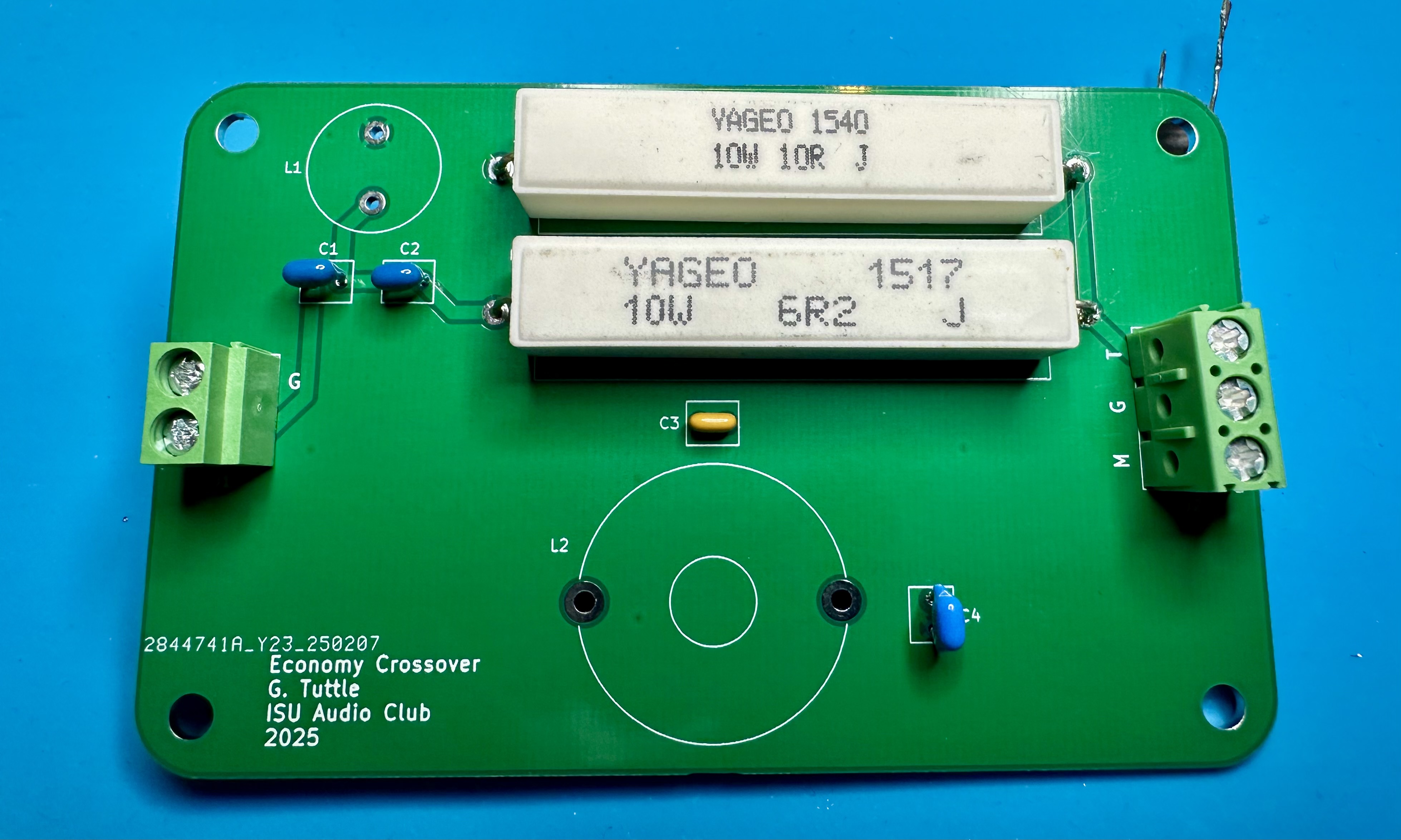 Special note for Fall 2025/Spring 2026 builders: I made a slight change to the PCBs recently, and there is a subtle difference between the old and new versions. The older version used one 2-postion terminal block — for the input — and one 3-position terminal block — connected to both mid-range and tweeter. The newer version uses three 2-position terminal blocks — one for the input, one for the mid-range, and one for the tweeter. Depending on how the board supply is depleting, you may have received the older version. The two different versions function identically. The only difference is during the final assembly when connecting the PCBs to the speaker drivers. The photos used below were taken using the older version, so the instructions and the photos may not match exactly.