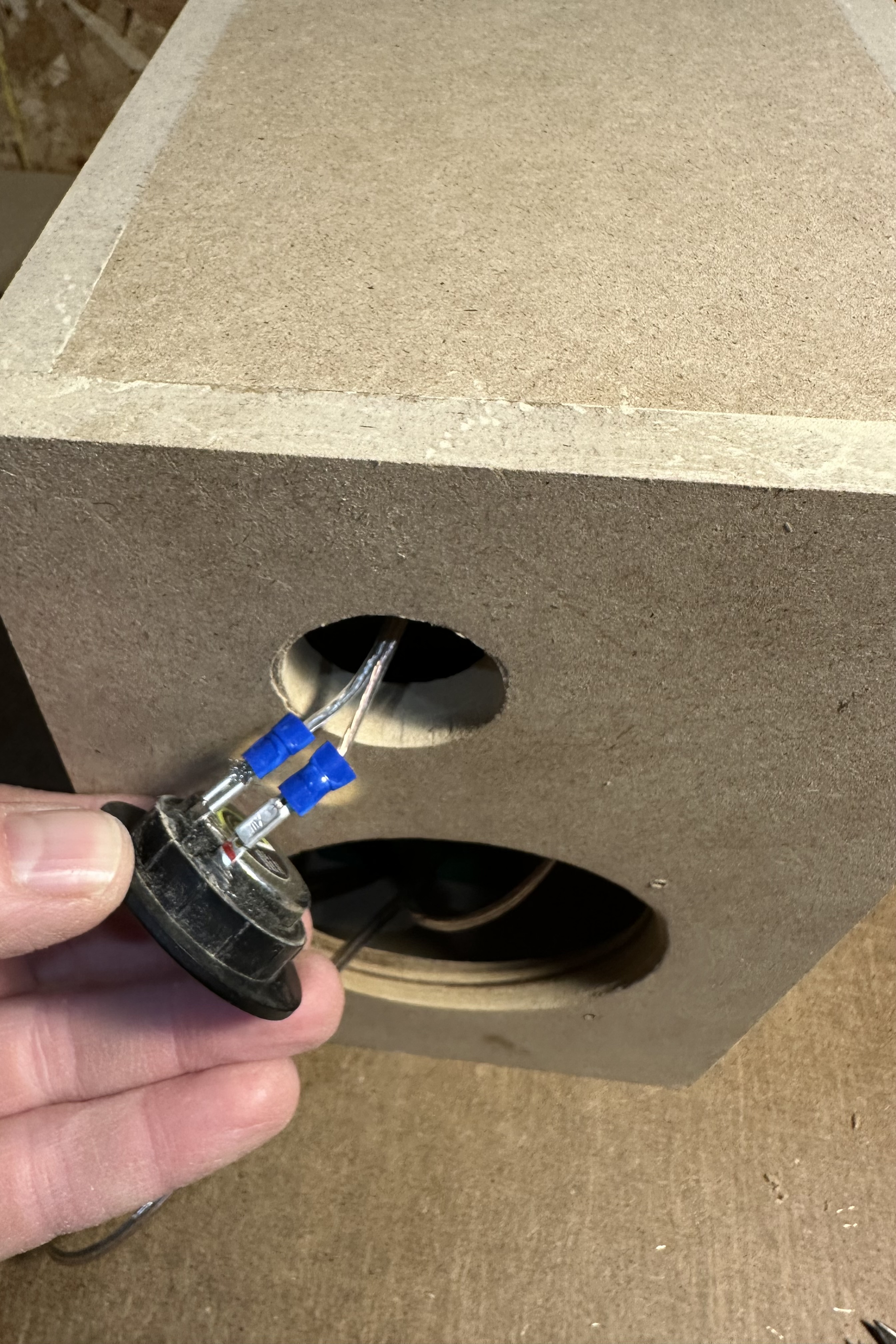 - Do the same for the tweeter. This should be a tight fit, but if the tweeter hole is too small, enlarge it until the tweeter just fits.