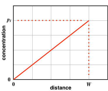 In some region of a semiconductor, the hole concentration varies linearly with distance, as shown below,